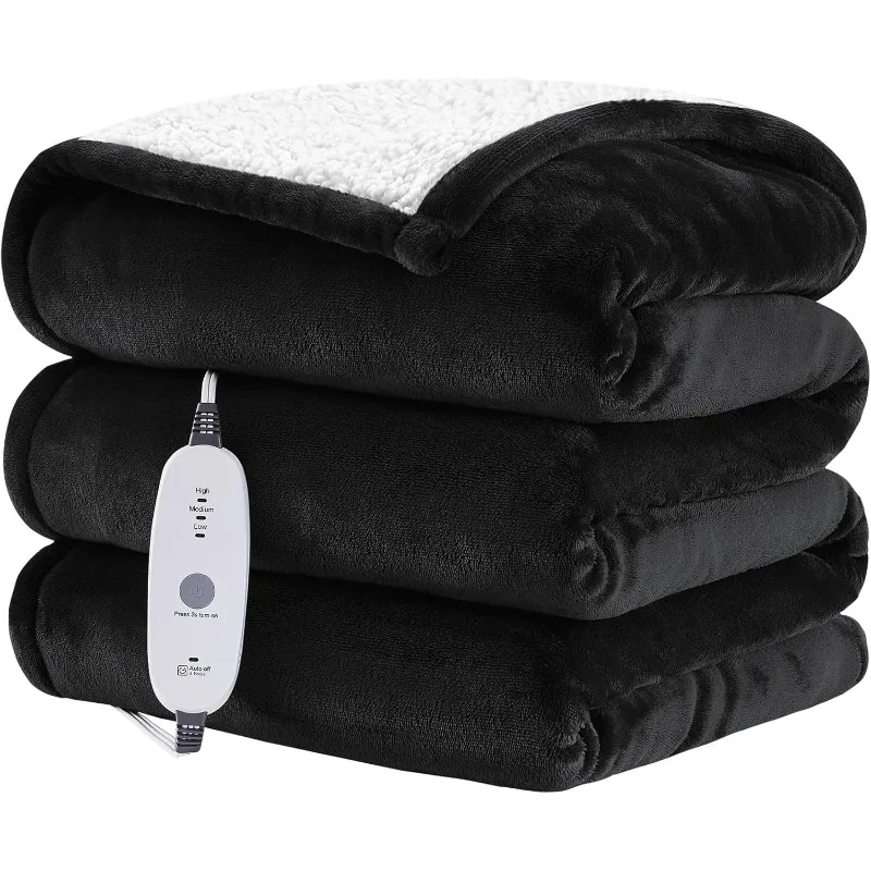 Electric Blanket, 4-hour Timer with Automatic Shutdown and 3 Heating Levels, Sherpa Heating Blanket with Overheat Protection