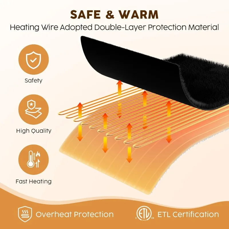 - 【Safety First】The heating blanket is ETL certified, with overheat protection and a 4-hour auto shut-off timer to prevent forgetting. Built-in high-quality heating wires heat up quickly. The U-shaped coil structure allows for even heat distribution, preventing short circuits and overheating, effectively avoiding safety issues